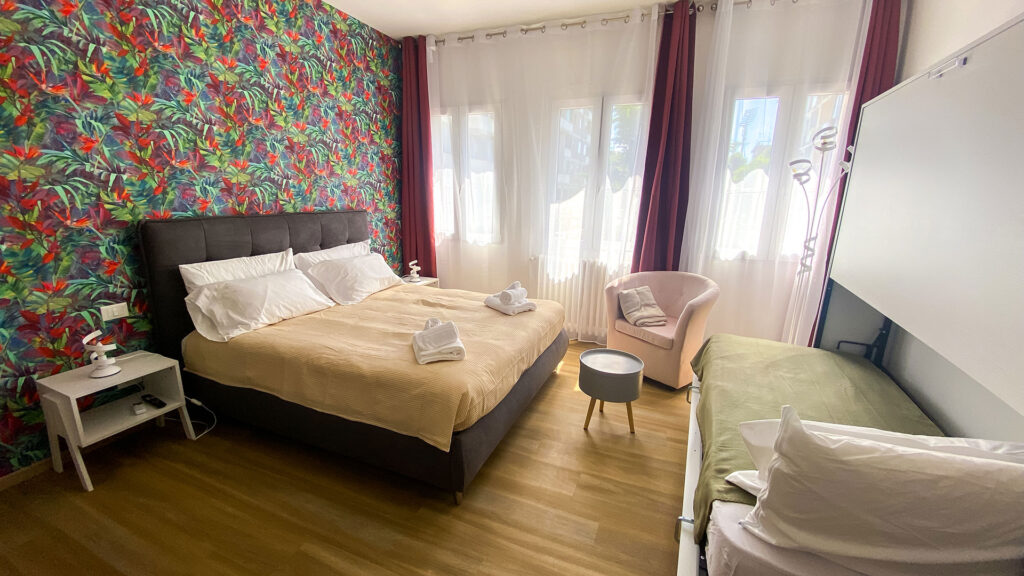 Ognuna delle nostre camere può ospitare fino a 4 persone comodamente, grazie a soluzioni di arredo innovative e di qualità. Ogni stanza dispone di bagno privato e di tutti i servizi che garantiscono massimo confort ai nostri ospiti.